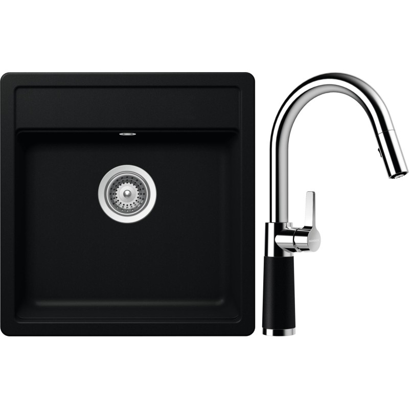 Cenově zvýhodněný set dřezu a baterie Schock S10-7 - obsahuje granitový jednodřez Mono N-100S Puro a baterii se sprchou SC-520.120 Puro.