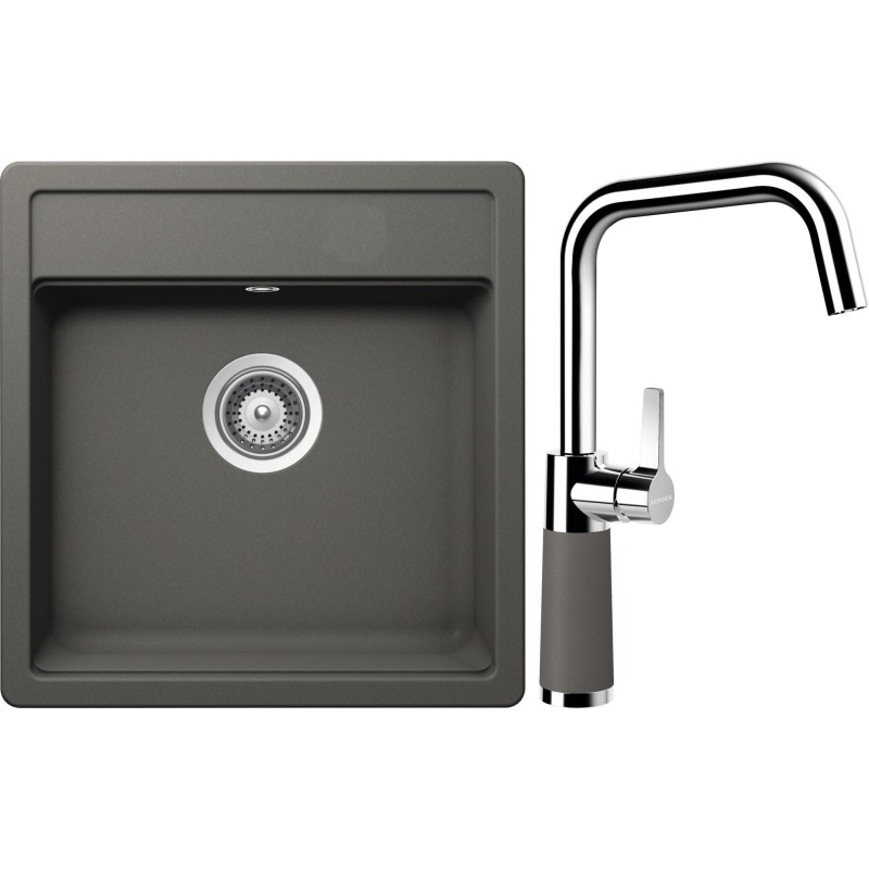 Cenově zvýhodněný set dřezu a baterie Schock S10-8 - obsahuje granitový jednodřez Mono N-100S Silverstone a baterii SC-530 Silverstone.