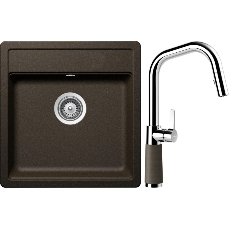 Cenově zvýhodněný set dřezu a baterie Schock S10-9 - obsahuje granitový jednodřez Mono N-100S Bronze a baterii se sprchou SC-530.120 Bronze.
