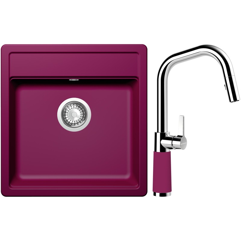 Cenově zvýhodněný set dřezu a baterie Schock S10-9 - obsahuje granitový jednodřez Mono N-100S Berry a baterii se sprchou SC-530.120 Berry.