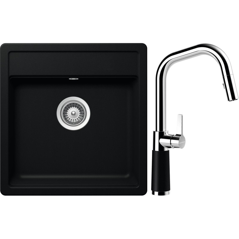 Cenově zvýhodněný set dřezu a baterie Schock S10-9 - obsahuje granitový jednodřez Mono N-100S Puro a baterii se sprchou SC-530.120 Puro.