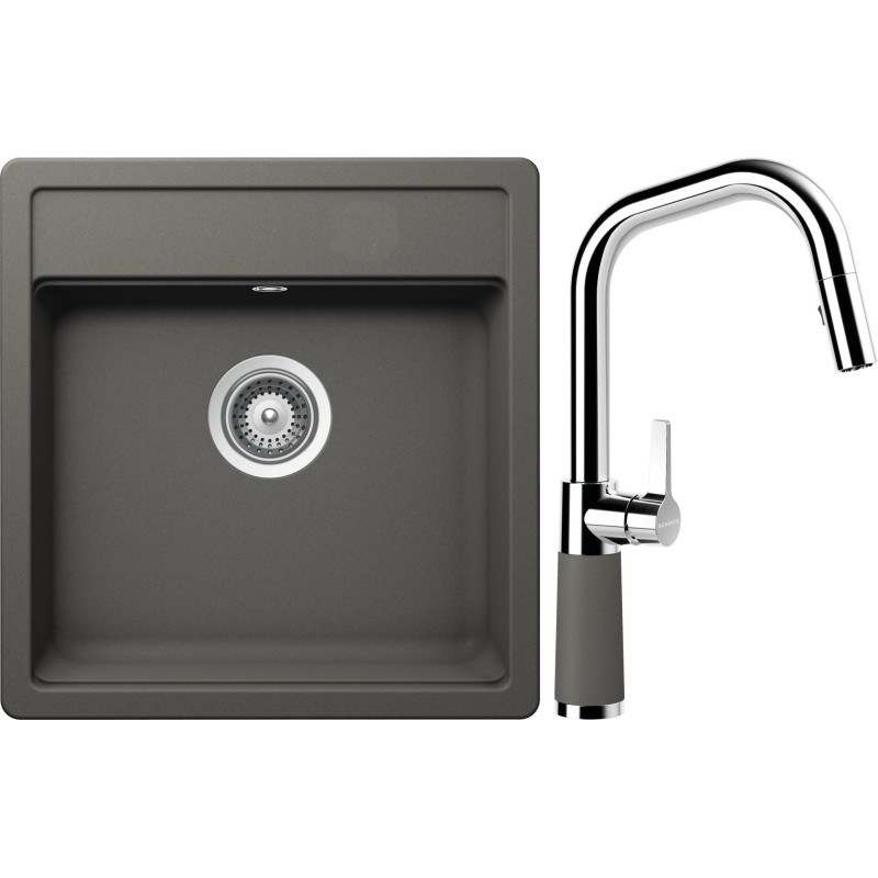 Cenově zvýhodněný set dřezu a baterie Schock S10-9 - obsahuje granitový jednodřez Mono N-100S Silverstone a baterii se sprchou SC-530.120 Silverstone.