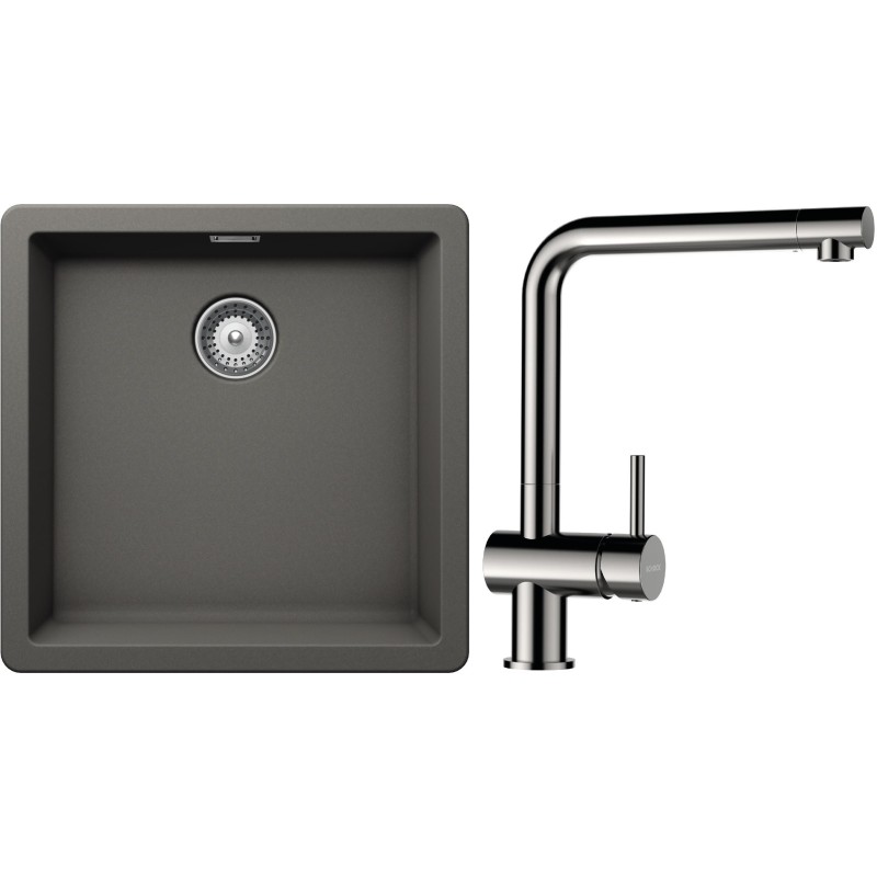 Cenově zvýhodněný set dřezu a baterie Schock S11-3 - obsahuje granitový jednodřez Greenwich N-100 Silverstone a baterii Epos Nerezový vzhled.