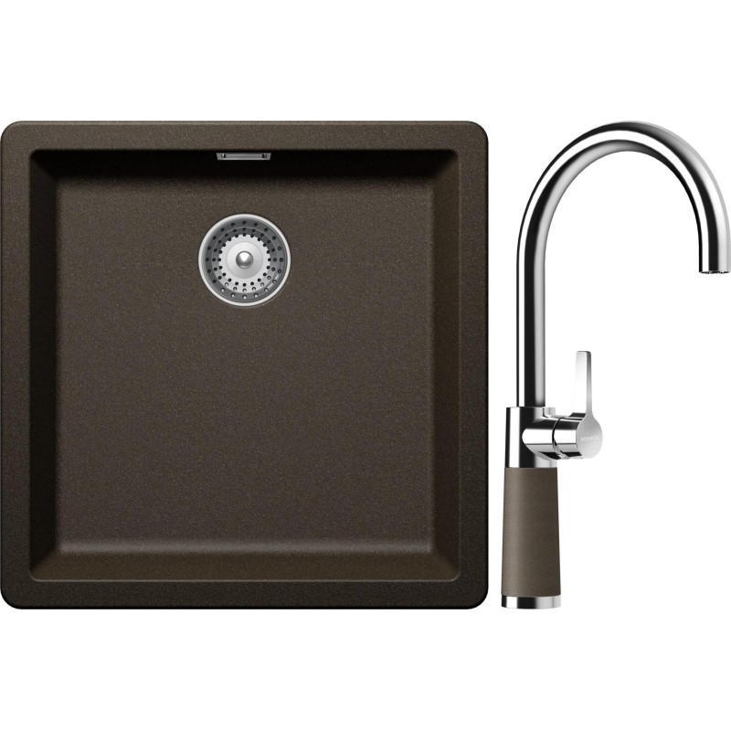 Cenově zvýhodněný set dřezu a baterie Schock S11-6 - obsahuje granitový jednodřez Greenwich N-100 Bronze a baterii SC-520 Bronze.
