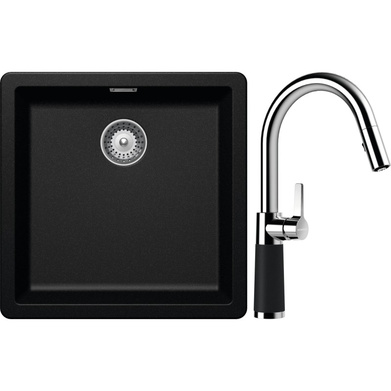Cenově zvýhodněný set dřezu a baterie Schock S11-7 - obsahuje granitový jednodřez Greenwich N-100 Magma a baterii se sprchou SC-520.120 Magma.