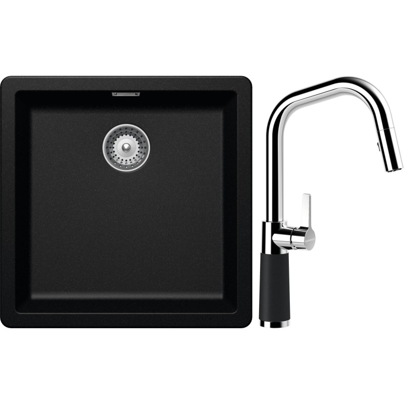 Cenově zvýhodněný set dřezu a baterie Schock S11-9 - obsahuje granitový jednodřez Greenwich N-100 Magma a baterii se sprchou SC-530.120 Magma.