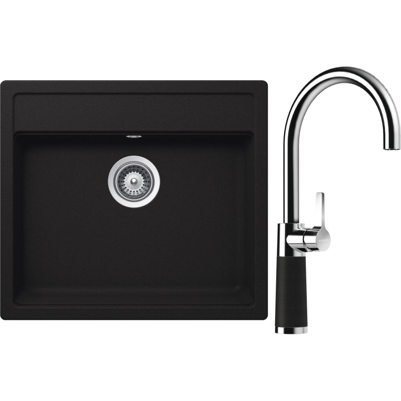 Cenově zvýhodněný set dřezu a baterie Schock S24-8 - obsahuje granitový jednodřez Nemo N-100 Onyx a baterii SC-520 Onyx.