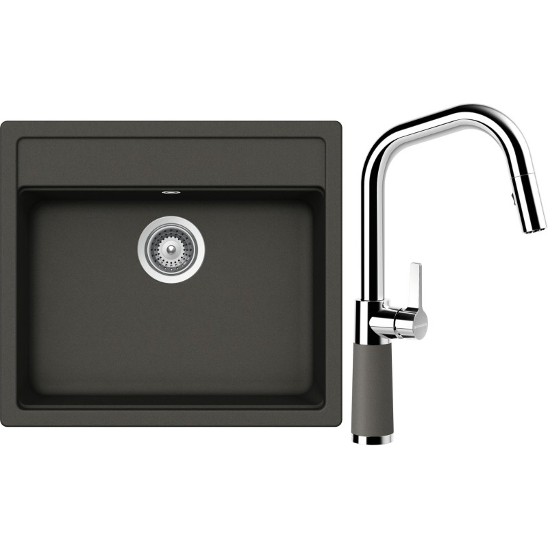 Cenově zvýhodněný set dřezu a baterie Schock S24-11 - obsahuje granitový jednodřez Nemo N-100 Asphalt a baterii se sprchou SC-530.120 Asphalt.