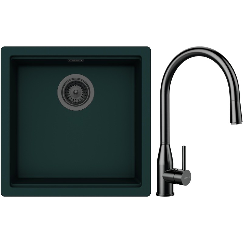 Cenově zvýhodněný set dřezu a baterie Schock S31-10 - obsahuje granitový jednodřez Kiruna N-100 Ivy, baterii s vytahovací koncovkou Kavus.120 Gunmetal brushed a části dřezu v provedení Gunmetal brushed.