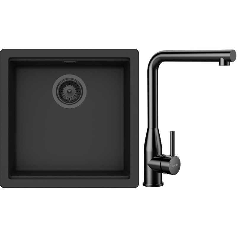 Cenově zvýhodněný set dřezu a baterie Schock S31-15 - obsahuje granitový jednodřez Kiruna N-100 Dusk, baterii Keto Gunmetal brushed a části dřezu v provedení Gunmetal brushed.