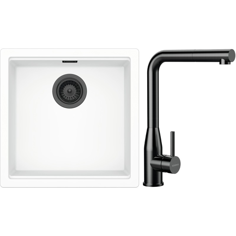 Cenově zvýhodněný set dřezu a baterie Schock S31-20 - obsahuje granitový jednodřez Kiruna N-100 Day, baterii s vytahovací koncovkou Keto.120 Gunmetal brushed a části dřezu v provedení Gunmetal brushed.