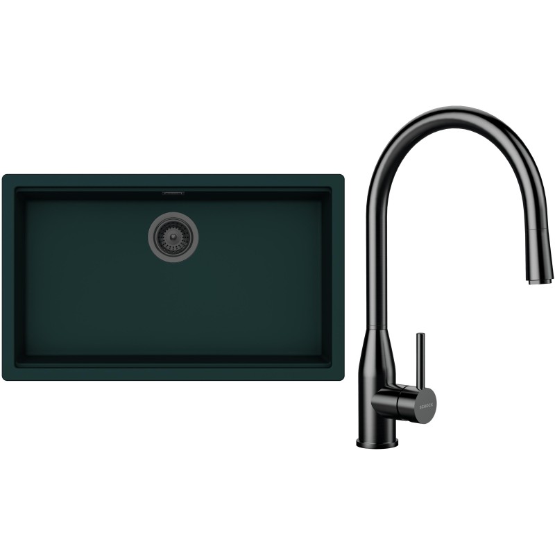 Cenově zvýhodněný set dřezu a baterie Schock S33-10 - obsahuje granitový jednodřez Kiruna N-100XL Ivy, baterii s vytahovací koncovkou Kavus.120 Gunmetal brushed a části dřezu v provedení Gunmetal brushed.