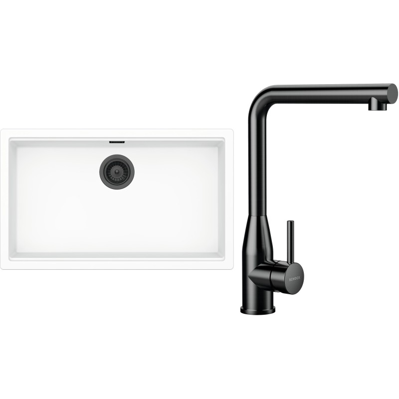 Cenově zvýhodněný set dřezu a baterie Schock S33-15 - obsahuje granitový jednodřez Kiruna N-100XL Day, baterii Keto Gunmetal brushed a části dřezu v provedení Gunmetal brushed.