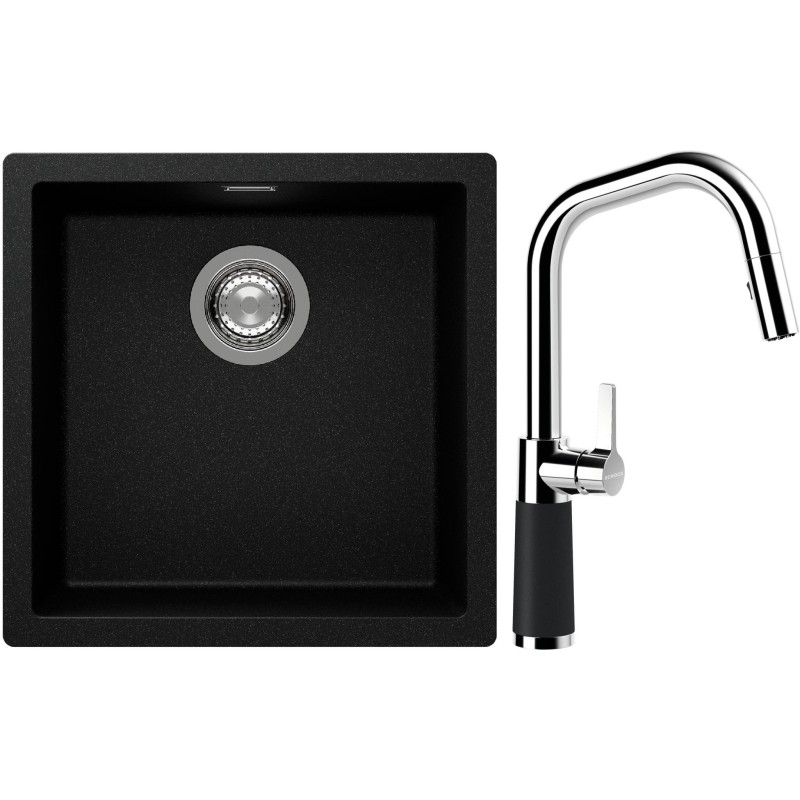 Cenově zvýhodněný set dřezu a baterie Schock S13-9 - obsahuje granitový jednodřez Kaia N-100 Magma a baterii se sprchou SC-530.120 Magma.