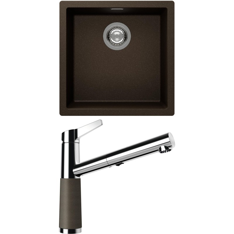 Cenově zvýhodněný set dřezu a baterie Schock S13-5 - obsahuje granitový jednodřez Kaia N-100 Bronze a baterii se sprchou SC-510.120 Bronze.