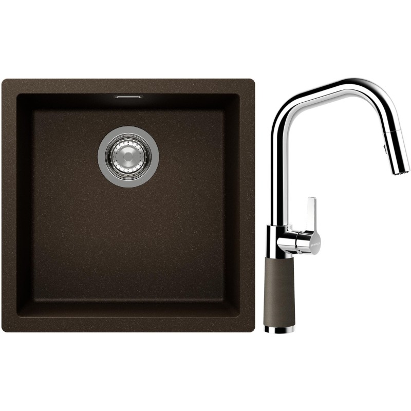 Cenově zvýhodněný set dřezu a baterie Schock S13-9 - obsahuje granitový jednodřez Kaia N-100 Bronze a baterii se sprchou SC-530.120 Bronze.