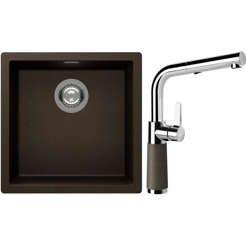 Cenově zvýhodněný set dřezu a baterie Schock S13-11 - obsahuje granitový jednodřez Kaia N-100 Bronze a baterii se sprchou SC-540.120 Bronze.