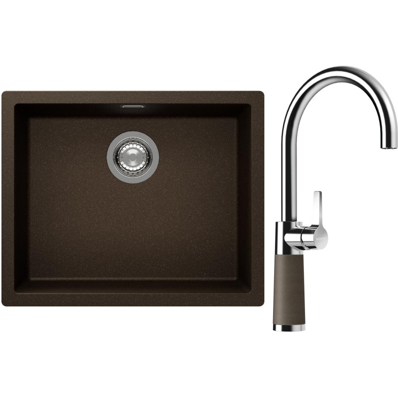 Cenově zvýhodněný set dřezu a baterie Schock S14-6 - obsahuje granitový jednodřez Kaia N-100L Bronze a baterii SC-520 Bronze.
