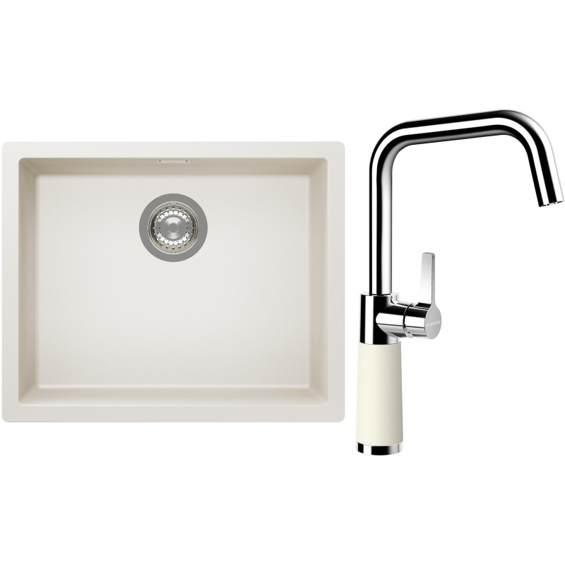 Cenově zvýhodněný set dřezu a baterie Schock S14-8 - obsahuje granitový jednodřez Kaia N-100L Magnolia a baterii SC-530 Magnolia.