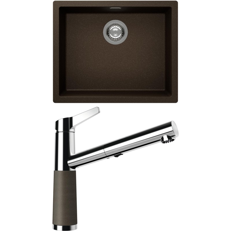 Cenově zvýhodněný set dřezu a baterie Schock S14-5 - obsahuje granitový jednodřez Kaia N-100L Bronze a baterii se sprchou SC-510.120 Bronze.