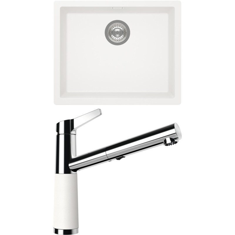 Cenově zvýhodněný set dřezu a baterie Schock S14-5 - obsahuje granitový jednodřez Kaia N-100L Polaris a baterii se sprchou SC-510.120 Polaris.