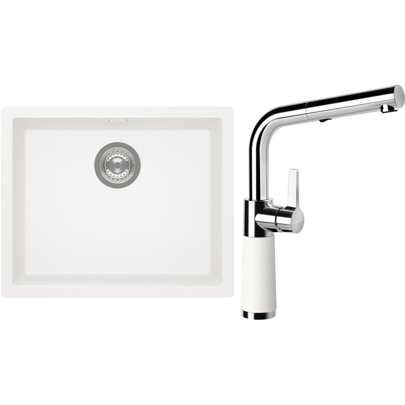 Cenově zvýhodněný set dřezu a baterie Schock S14-11 - obsahuje granitový jednodřez Kaia N-100L Polaris a baterii se sprchou SC-540.120 Polaris.