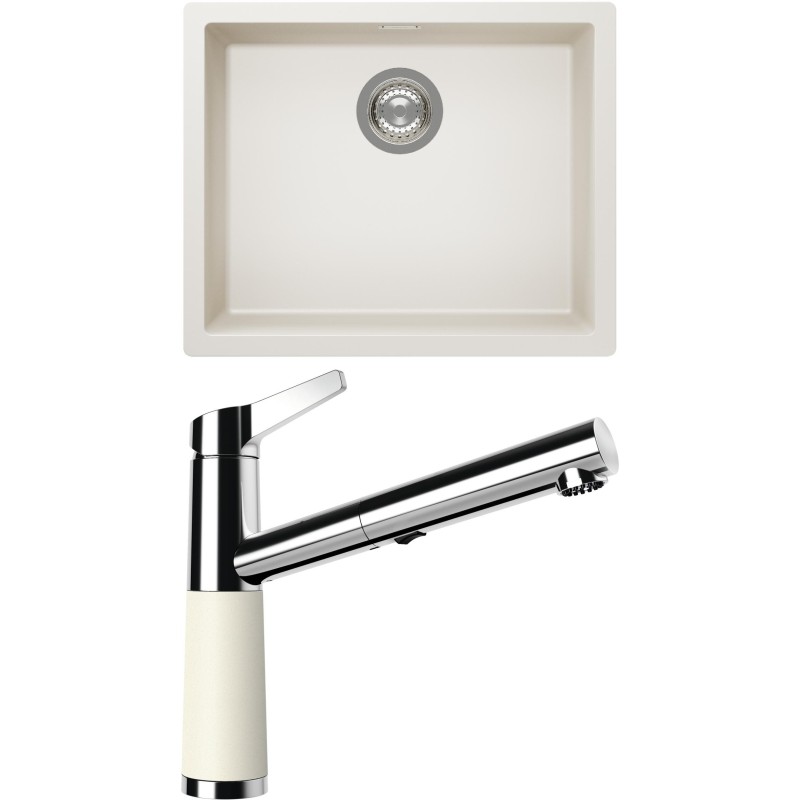 Cenově zvýhodněný set dřezu a baterie Schock S14-5 - obsahuje granitový jednodřez Kaia N-100L Magnolia a baterii se sprchou SC-510.120 Magnolia.