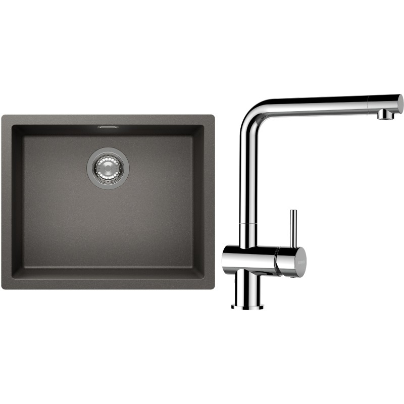 Cenově zvýhodněný set dřezu a baterie Schock S14-12 - obsahuje granitový jednodřez Kaia N-100L Silverstone a baterii Epos Chrom.
