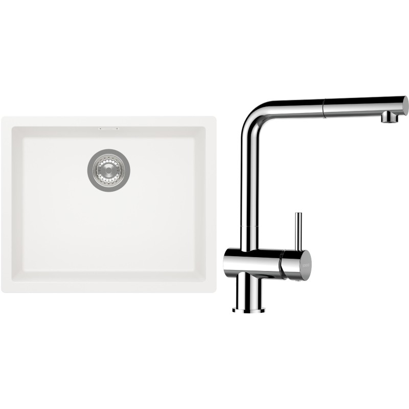 Cenově zvýhodněný set dřezu a baterie Schock S14-13 - obsahuje granitový jednodřez Kaia N-100L Polaris a baterii s vytahovací koncovkou Epos.120 Chrom.