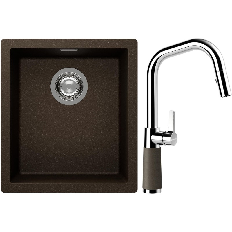 Cenově zvýhodněný set dřezu a baterie Schock S12-9 - obsahuje granitový jednodřez Kaia N-100S Bronze a baterii se sprchou SC-530.120 Bronze.