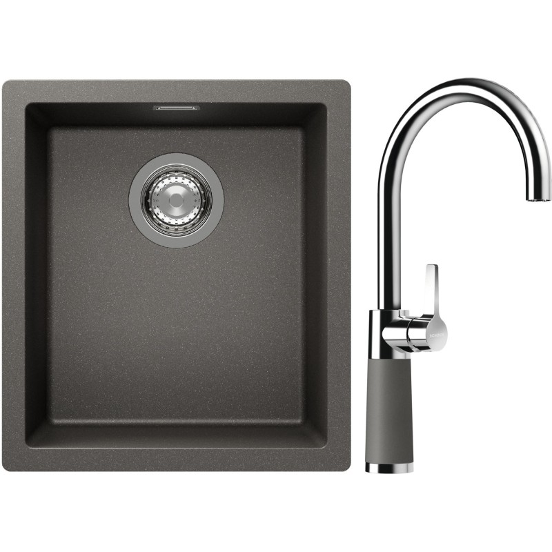 Cenově zvýhodněný set dřezu a baterie Schock S12-6 - obsahuje granitový jednodřez Kaia N-100S Silverstone a baterii SC-520 Silverstone.