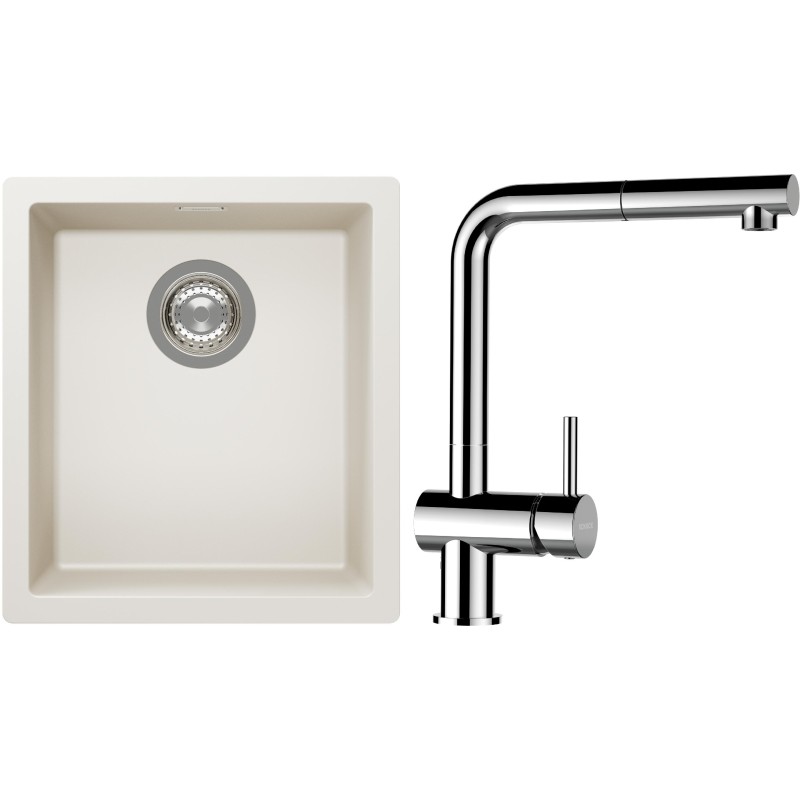 Cenově zvýhodněný set dřezu a baterie Schock S12-13 - obsahuje granitový jednodřez Kaia N-100S Magnolia a baterii s vytahovací koncovkou Epos.120 Chrom.