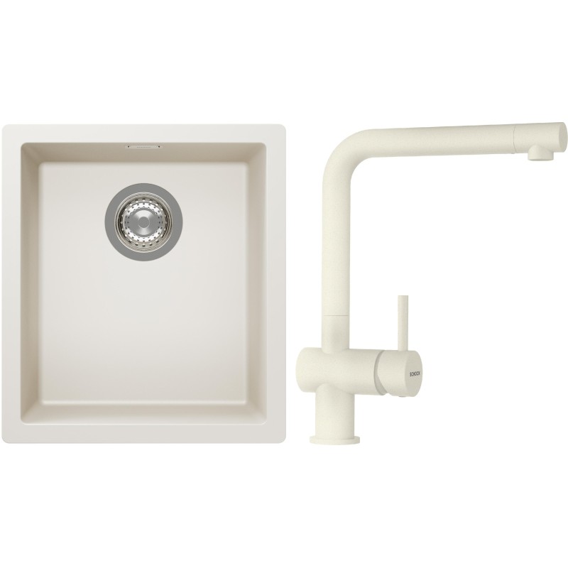 Cenově zvýhodněný set dřezu a baterie Schock S12-1 - obsahuje granitový jednodřez Kaia N-100S Magnolia a baterii Epos Magnolia.