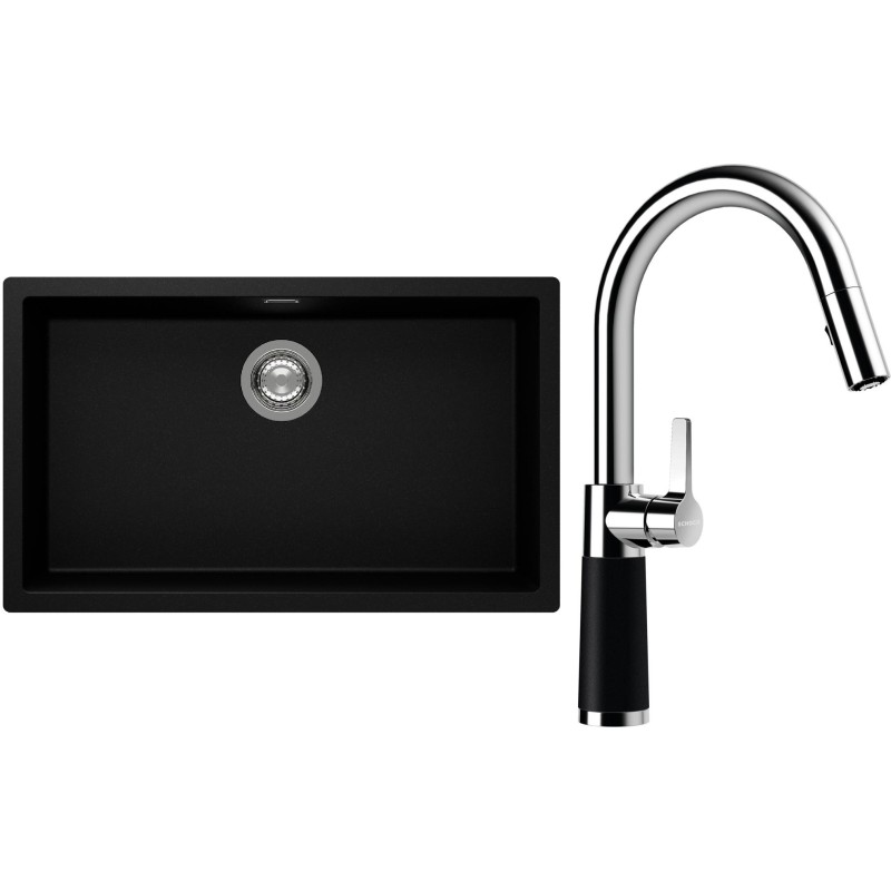 Cenově zvýhodněný set dřezu a baterie Schock S15-7 - obsahuje granitový jednodřez Kaia N-100XL Puro a baterii se sprchou SC-520.120 Puro.