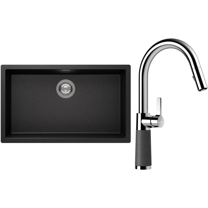 Cenově zvýhodněný set dřezu a baterie Schock S15-7 - obsahuje granitový jednodřez Kaia N-100XL Stone a baterii se sprchou SC-520.120 Stone.