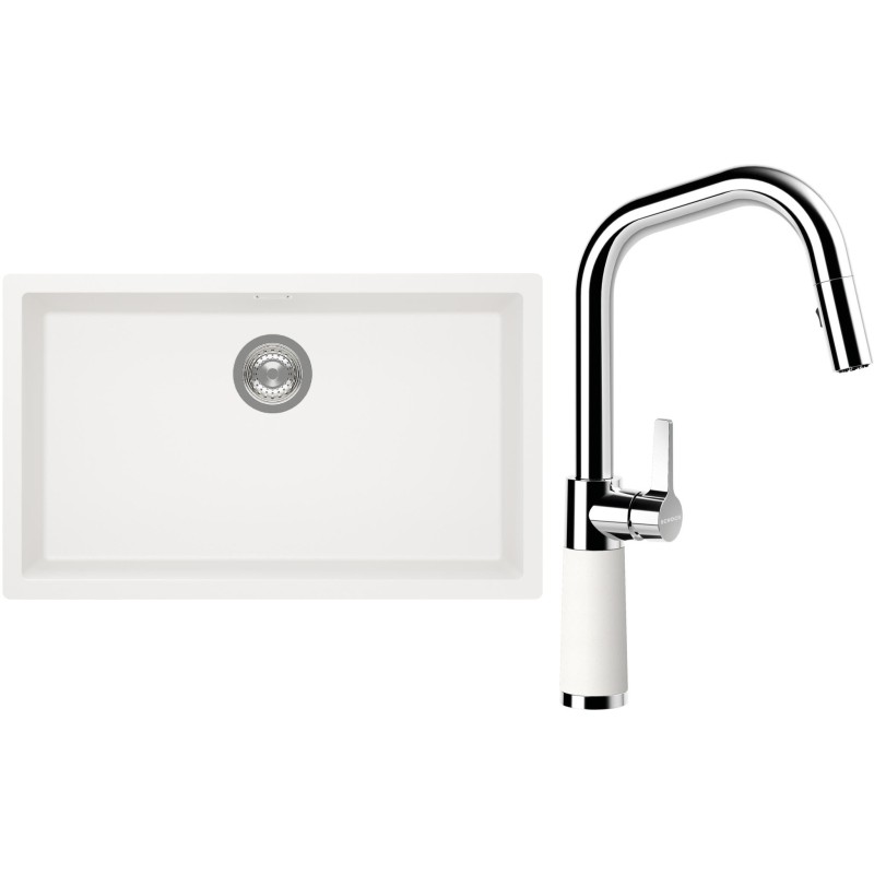 Cenově zvýhodněný set dřezu a baterie Schock S15-9 - obsahuje granitový jednodřez Kaia N-100XL Polaris a baterii se sprchou SC-530.120 Polaris.