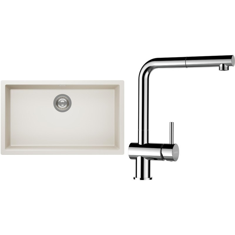 Cenově zvýhodněný set dřezu a baterie Schock S15-13 - obsahuje granitový jednodřez Kaia N-100XL Magnolia a baterii s vytahovací koncovkou Epos.120 Chrom.