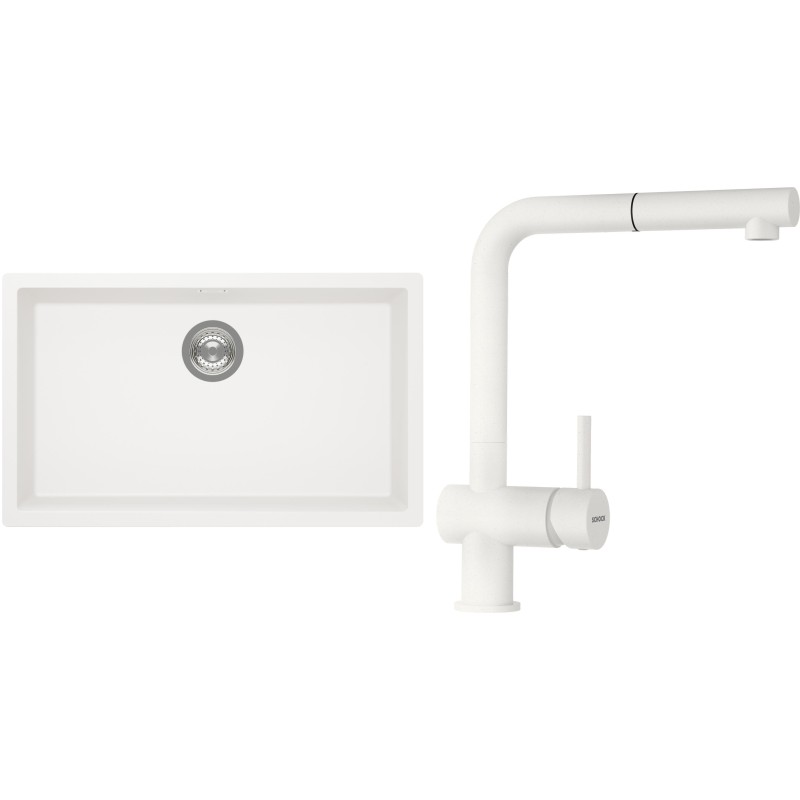 Cenově zvýhodněný set dřezu a baterie Schock S15-2 - obsahuje granitový jednodřez Kaia N-100XL Polaris a baterii s vytahovací koncovkou Epos.120 Polaris.