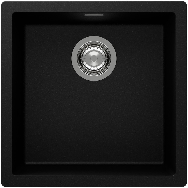 Hranatý granitový jednodřez, provedení Puro, rozměr 456 x 456 mm, vana 400 x 400 x 200 mm, montáž do roviny, minimálně 50 cm skříňka, s excentrem.