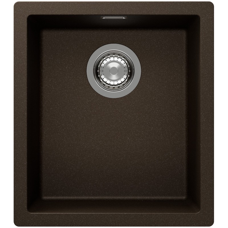Hranatý granitový jednodřez, provedení Bronze, rozměr 406 x 456 mm, vana 350 x 400 x 200 mm, montáž do roviny, minimálně 45 cm skříňka, s excentrem.
