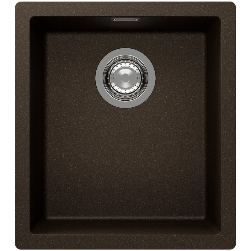 Hranatý granitový jednodřez, provedení Bronze, rozměr 406 x 456 mm, vana 350 x 400 x 200 mm, horní montáž, minimálně 45 cm skříňka, s excentrem.