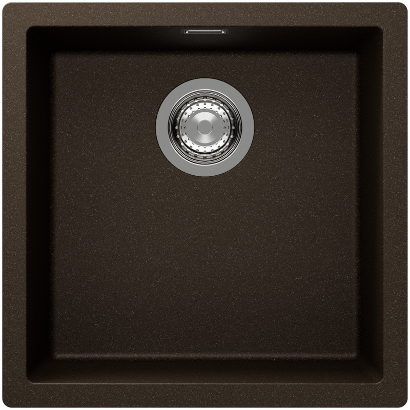 Hranatý granitový jednodřez, provedení Bronze, rozměr 456 x 456 mm, vana 400 x 400 x 200 mm, spodní montáž, minimálně 50 cm skříňka, s excentrem.