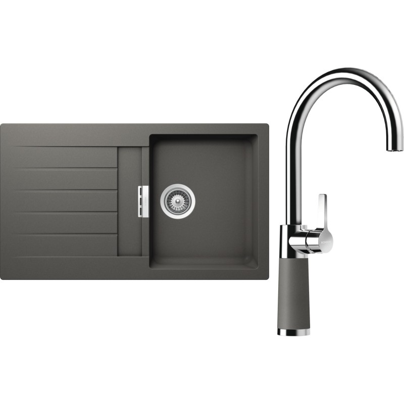 Cenově zvýhodněný set dřezu a baterie Schock S1-6 - obsahuje granitový dřez s odkapem Signus D-100 Silverstone a baterii SC-520 Silverstone.