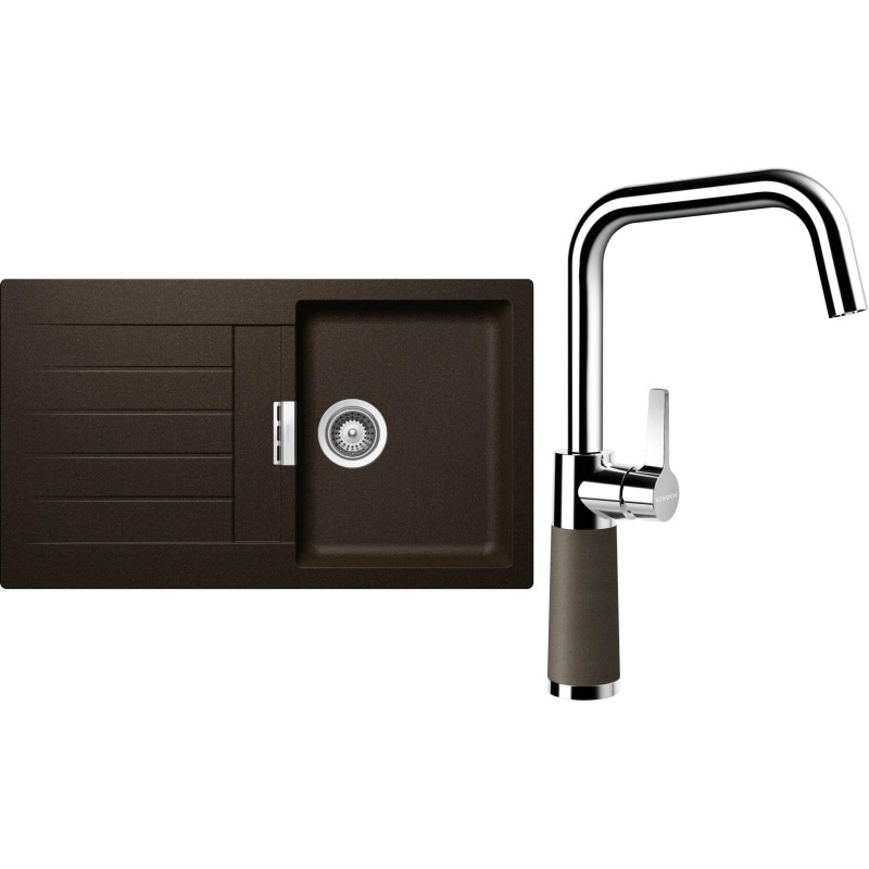 Cenově zvýhodněný set dřezu a baterie Schock S1-8 - obsahuje granitový dřez s odkapem Signus D-100 Bronze a baterii SC-530 Bronze.