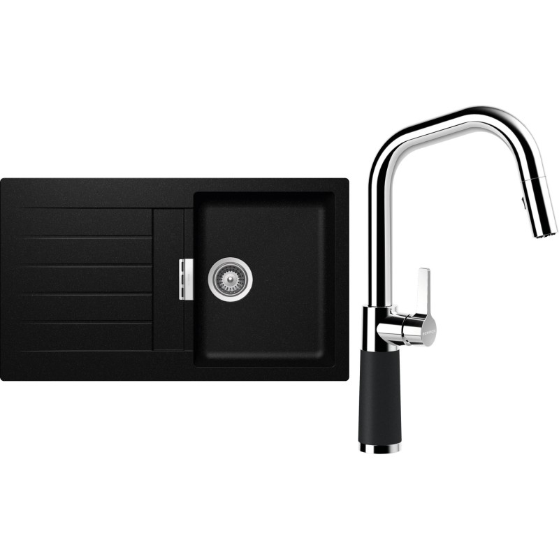 Cenově zvýhodněný set dřezu a baterie Schock S1-9 - obsahuje granitový dřez s odkapem Signus D-100 Magma a baterii se sprchou SC-530.120 Magma.