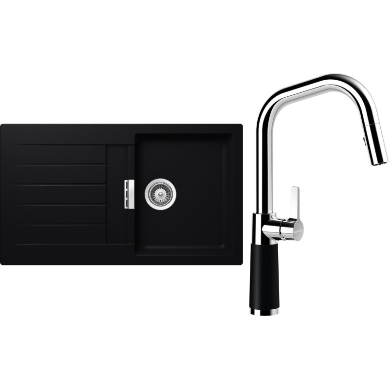 Cenově zvýhodněný set dřezu a baterie Schock S1-9 - obsahuje granitový dřez s odkapem Signus D-100 Puro a baterii se sprchou SC-530.120 Puro.