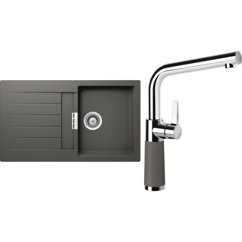 Cenově zvýhodněný set dřezu a baterie Schock S1-10 - obsahuje granitový dřez s odkapem Signus D-100 Silverstone a baterii SC-540 Silverstone.