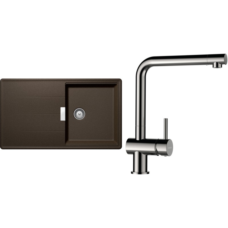 Cenově zvýhodněný set dřezu a baterie Schock S16-3 - obsahuje granitový dřez s odkapem Tia D-100 Bronze a baterii Epos Nerezový vzhled.