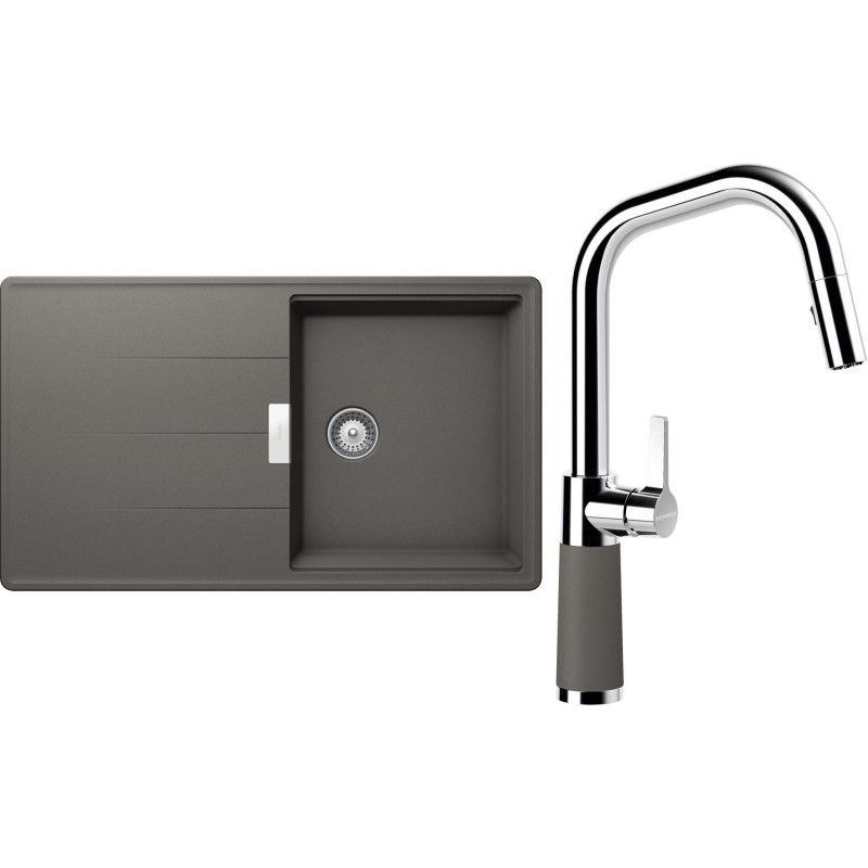 Cenově zvýhodněný set dřezu a baterie Schock S16-9 - obsahuje granitový dřez s odkapem Tia D-100 Silverstone a baterii se sprchou SC-530.120 Silverstone.