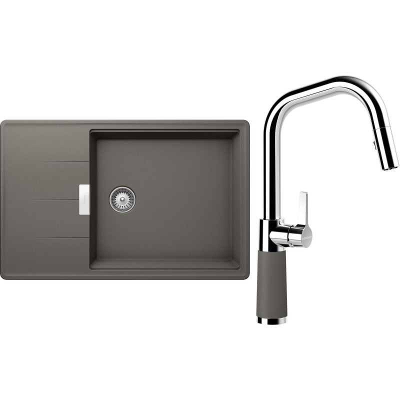 Cenově zvýhodněný set dřezu a baterie Schock S17-9 - obsahuje granitový dřez s odkapem Tia D-100LS Silverstone a baterii se sprchou SC-530.120 Silverstone.